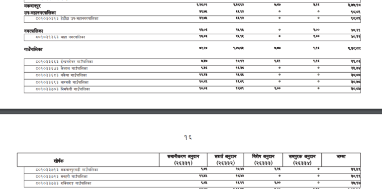 त्यस्तै थाहा नगरपालिकाले ४० करोड २१ लाख अनुदान बजेट पाउने भएको छ ।