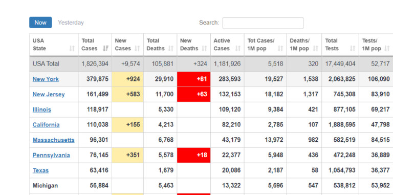 काठमाडौं । विश्वमा सबैभन्दा बढी कोरोनाको असर संयुक्त राज्य अमेरिकामा देखिएको छ । यो समाचार तयार पार्दासम्म अमेरिकामा कोरोनाको कारण ज्यान गुमाउनेको संख्या १ लाख ५ हजार ७ सय ९२ पुगेको छ । बितेको २४ घण्टामा थप ८ हजार २ सय ६३ जनामा कोरोना संक्रमण पुष्टि भएसँगै कुल संक्रमितको संख्या १८ लाख २५ हजार ८३ पुगेको छ ।