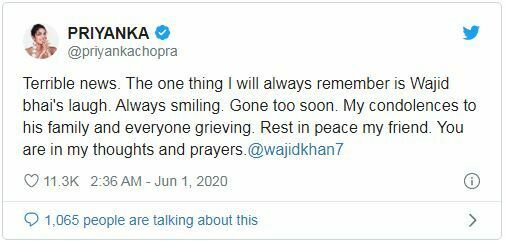 वाजिदको निधनमा प्रियंका चोपडा, गायक सोनू निगम लगायत कलाकारले शोक व्यक्त गरेका छन्।