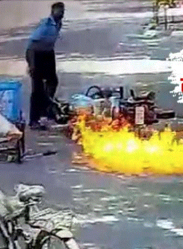त्यसपछि मात्र उनीहरुलाई कम्पनी भित्र गाडि लान अनुमति मिल्छ । यसै प्रक्रियामा एक कर्मचारी आफ्नो गाडीलाई स्यानिटाइज गरिरहेका थिए, अचानक त्यहि बेला बाइकमा आगो लाग्यो ।