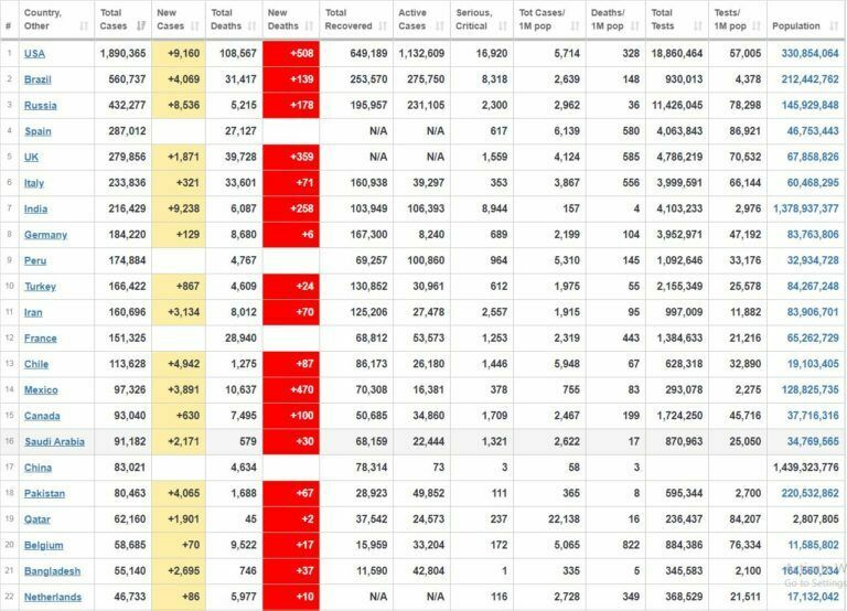 वर्ल्डोमिटर्र्सको तथ्यांक हेर्नुहोस् :
