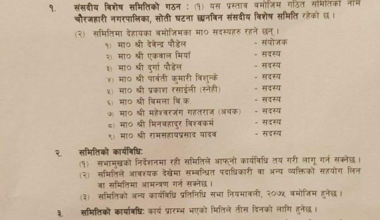 काठमाडौं । गत जेठ १० गते रुकुम चौरजाहारीमा भएको घटनाको छानबिनका लागि संसदीय विशेष समिति गठन भएको छ ।