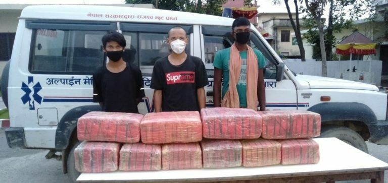 अल्पाईन मेडिकल कलेज टिचिङ हस्पिटल सिमरा बाराको एम्बुलेन्स प्रयोग गरी जि.पर्सा बहुदरमाई न.पा.०५ स्थित भौराट्टार गाँउ तर्फ लैजादै गरेको अवस्थामा प्रहरीले ५६ के.जी.लागु औषध गाँजा र ना.४ च ८५९९ नम्बरको एम्बुलेन्स गाँजासहित तीन जनालाई पक्राउ गरेको छ ।