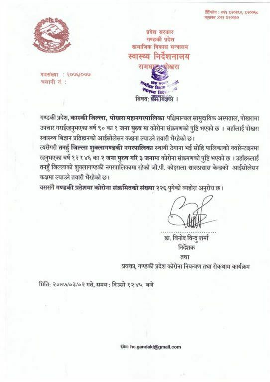 यससँगै गण्डकी प्रदेशमा कोरोना संक्रमितको संख्या २ सय २६ पुगेको छ ।