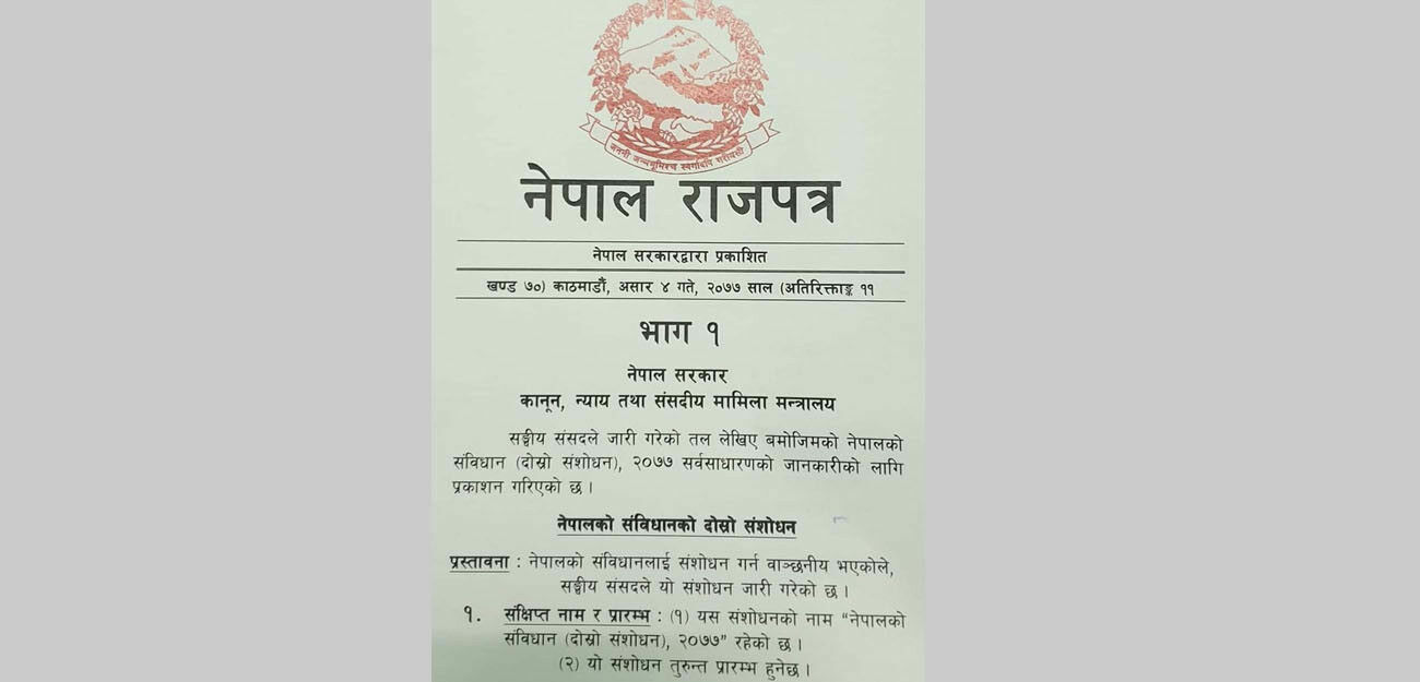 नेपालको संविधान दोस्रो संशोधन-२०७७ राजपत्रमा प्रकाशन