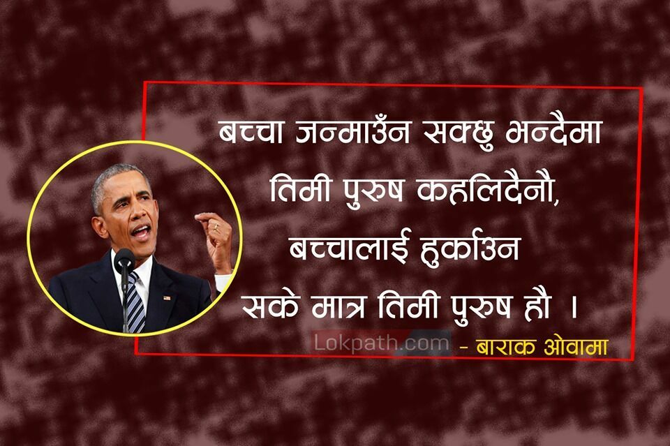 ११. बच्चा जन्माउँन सक्छु भन्दैमा तिमी पुरुष कहलिदैनौ,बच्चालाई हुर्काउन सके मात्र तिमी पुरुष हौ ।