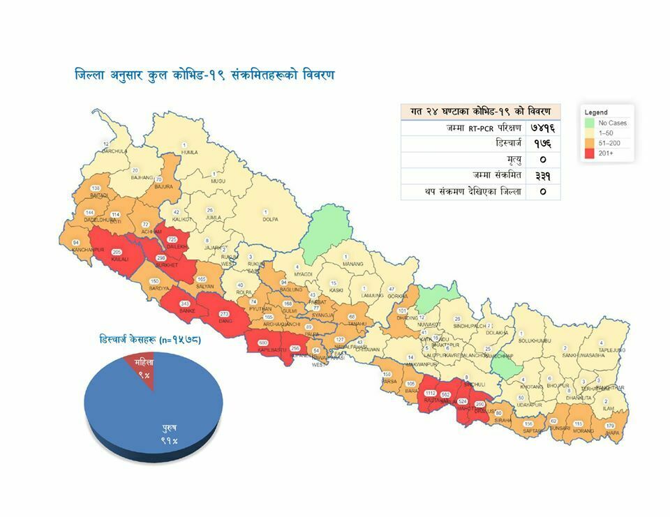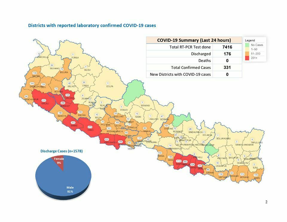 स्वास्थ्य मन्त्रालयको नियमित प्रेस ब्रिफिङमा मन्त्रालयका प्रवक्ता प्रा. डा. जागेश्वर गौतमले नेपालमा बितेको २४ घण्टामा ३३१ जनामा कोरोना संक्रमण पुष्टि भएको जानकारी दिए ।