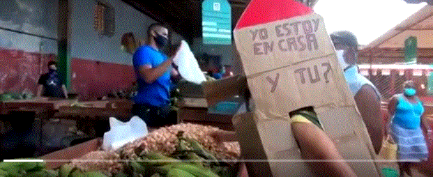 यसैबीच क्यूबाको हवानाकी एक ८२ वर्षकी महिलाले कोरोनाबाट बच्नको लागि बजार जाँदा कार्डबोर्ड बक्स लगाएर निस्किएकी छन् ।