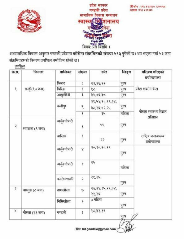 योसँगै गण्डकी प्रदेशमा संक्रमितको कूल संख्या ५९३ पुगेको छ ।