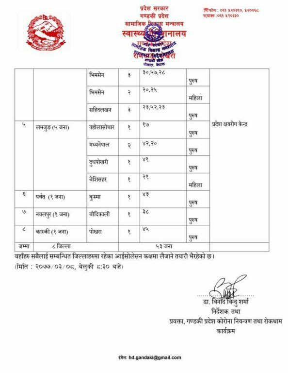 गण्डकी प्रदेशको सामाजिक विकास मन्त्रालयका अनुसार तनहुँ, स्याङ्जा, बागलुङ, गोरखा, लमजुङ, पर्वत, नवलपुर र कास्कीमा गरी सो संख्यामा संक्रमण पुष्टि भएको हो ।