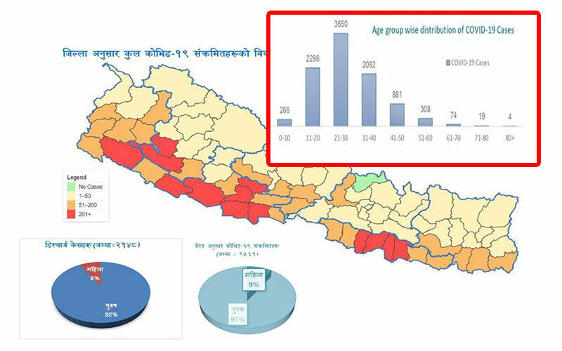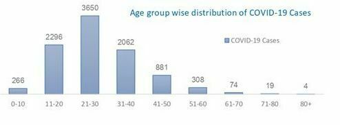 यसलाई समग्रतामा हेर्दा ११ वर्षदेखि ४० वर्ष उमेर समूहका मानिसमा धेरै संक्रमण देखिन्छ । यो उमेर समूहभित्र पर्ने कुल ८ हजार ८ जना संक्रमित छन् ।