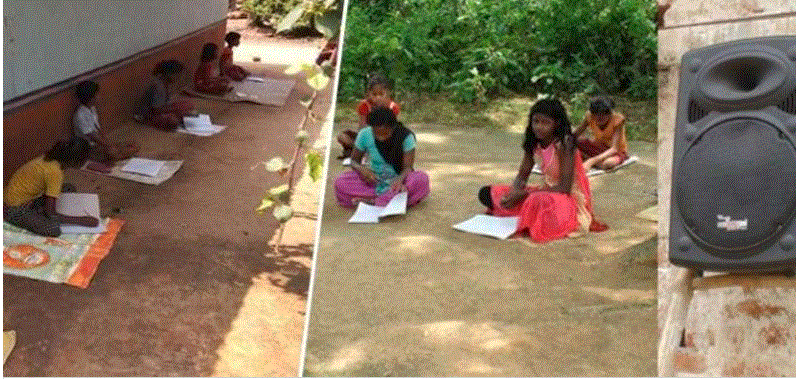 झारखण्डको दुमका जिल्लामा अनलाइन क्लास गर्नको लागि लाउड स्पिकरको प्रयोग गर्नुपरेको छ ।