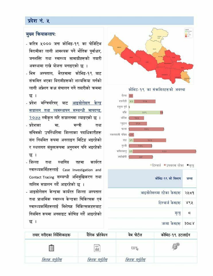 प्रादेशिक जनस्वास्थ्य प्रयोगशाला रुपन्देहीमा गरिएको परिक्षणमा :  नवलपरासीका ३ जना पुरुष,प्यूठानका २ जना महिला र ५ जना पुरुष,पाल्पाका २८ जना पुरुष र रुपन्देहीमा ४ जना महिला र ३ जना पुरुष