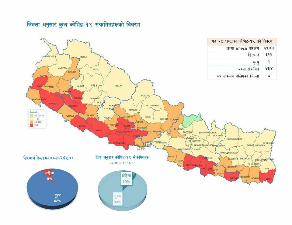 स्वास्थ्य मन्त्रालयको यो ‘ग्राफ’मा हेर्नुहोस्, कहाँ कति पुगे संक्रमित? (विवरणसहित)