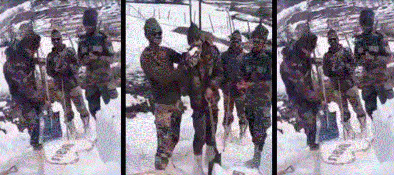 यस भिडियोमा एक जवानले बर्फको केक काटेर आफ्नो जन्मनिद मनाईरहेको देखिएको छ ।