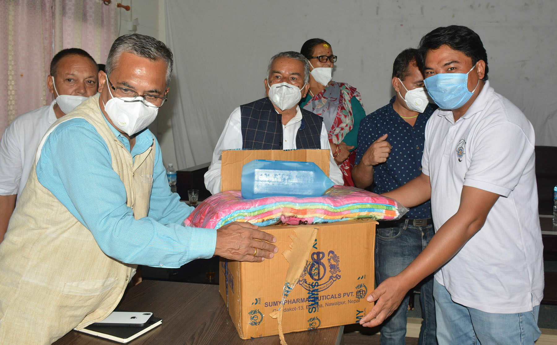 सो अवसरमा उनले जिपी कोइराला श्वासप्रश्वास अस्पतालका लागि ३० थान टावेल, ३०० थान सर्जिकल मास्क, १० लिटर स्यानीटाइजर, १० थान पिपिइ, आदिकवि भानुभक्त क्याम्पसका लागि ४२ थान टावेल, ३०० थान सर्जिकल मास्क, १० लिटर स्यानीटाइजर, १० थान पिपिइ हस्तान्तरण गरेका थिए । यसैगरी उनले बन्दीपुर गाउँपालिकाका लागि छ थान टावेल, ३०० थान सर्जिकल मास्क, पाँच लिटर स्यानीटाइजर, पाँच थान पिपिइ, दमौली अस्पतालका लागि १२ थान टावेल, ३०० थान सर्जिकल मास्क, पाँच लिटर स्यानीटाइजर, छ थान पिपिइ, भीमाद नगरपालिकाका लागि छ थान टावेल, ३०० थान सर्जिकल मास्क, पाँच लिटर स्यानीटाइजर, पाँच थान पिपिइ, देवघाट गाउँपालिकाका लागि छ थान टावेल, ३०० थान सर्जिकल मास्क, पाँच लिटर स्यानीटाइजर, पाँच थान पिपिइ, नेपाल पत्रकार महासङ्घ तनहुँका लागि ७० थान एन ९५ मास्क, २०० थान मास्क र १७ थान स्यानीटाइजर हस्तान्तरण गरेका थिए ।