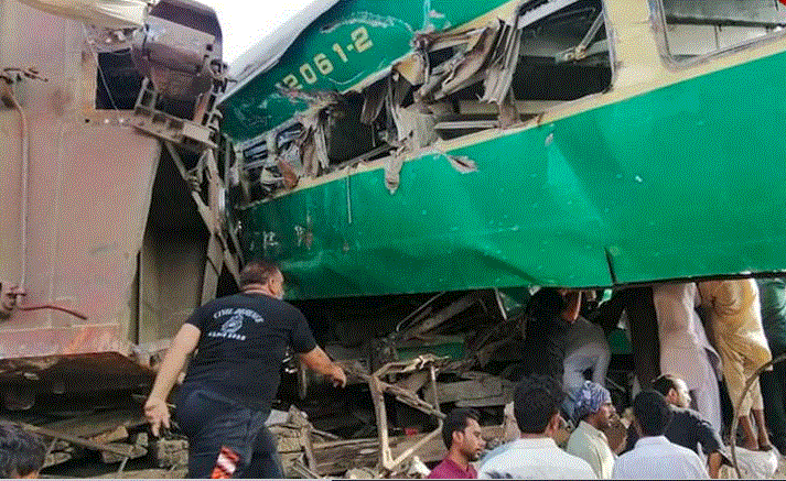 स्थानीय प्रहरीका अनुसार कराँचीबाट लाहोरतर्फ गइरहेको शाह हुसेन एक्सप्रेस ट्रेनले फारुकाबाद रेल्वे स्टेशन नजिक यात्रुबाहक बसलाई दिउँसो करिब १ः३० बजे ठक्कर दिएको थियो ।