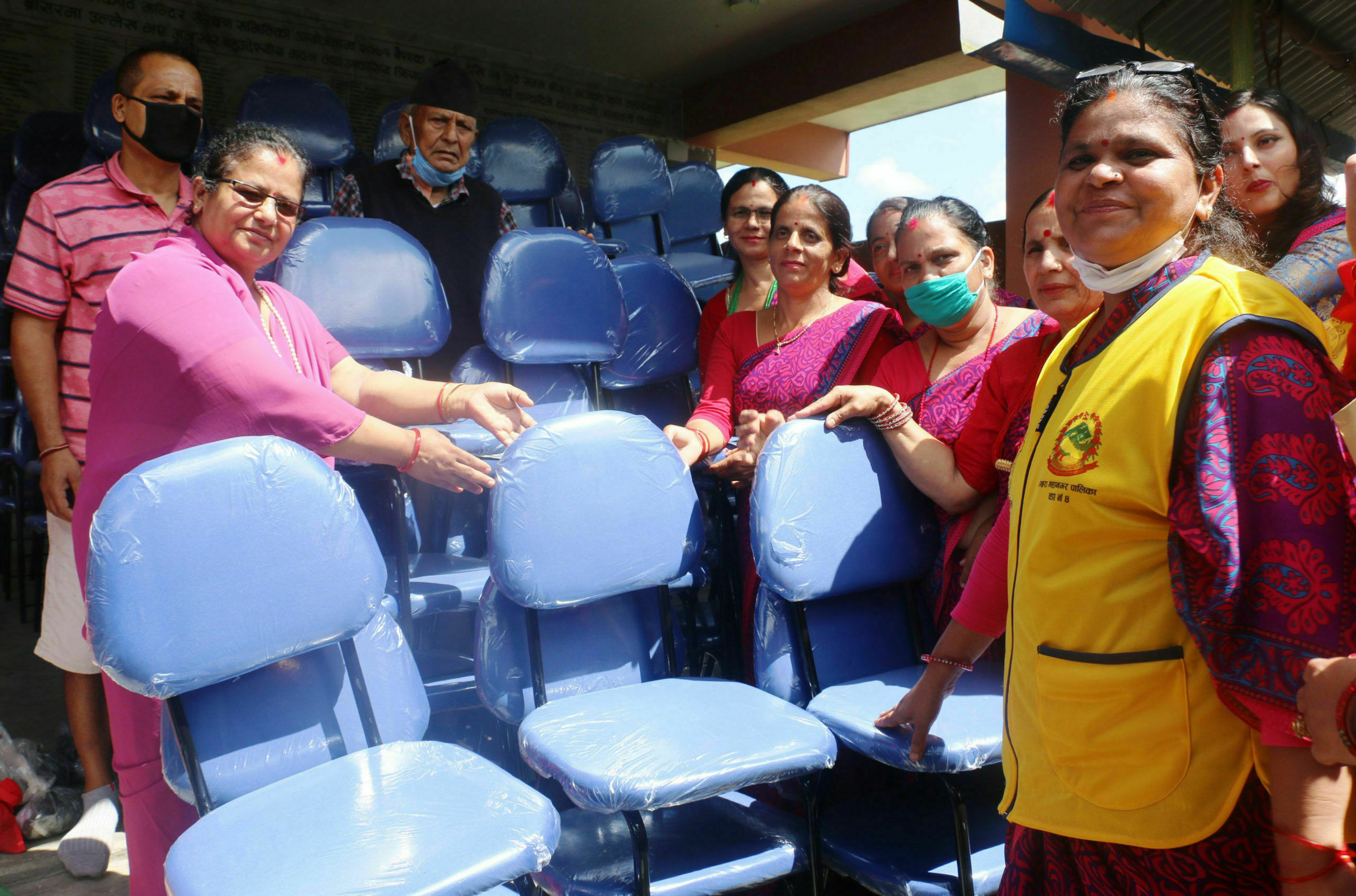 आश्रमका लागि २५ वटा लोवेड, ४० थान डसना र ब्ल्याङक्वेट तथा ८० थान सिरानी प्रदान गरियो भने सिर्जनशील आमा समूहलाई ५०, डाँडाथर आमा समूहलाई ४०, अम्बिका आमा समूहलाई २५ र कोलापाटन आमा समूह र चण्डीटोल आमा समूहलाई २०/२० थान फलामे कुर्ची वितरण गरिएको थियो । त्यस्तै नेपाल आदर्श महिला समूह, जनहित महिला समूह, नमूना महिला समूह र मुस्लिम समूहलाई १५/१५ थानका दरले कुर्ची वितरण गरिएको हो ।