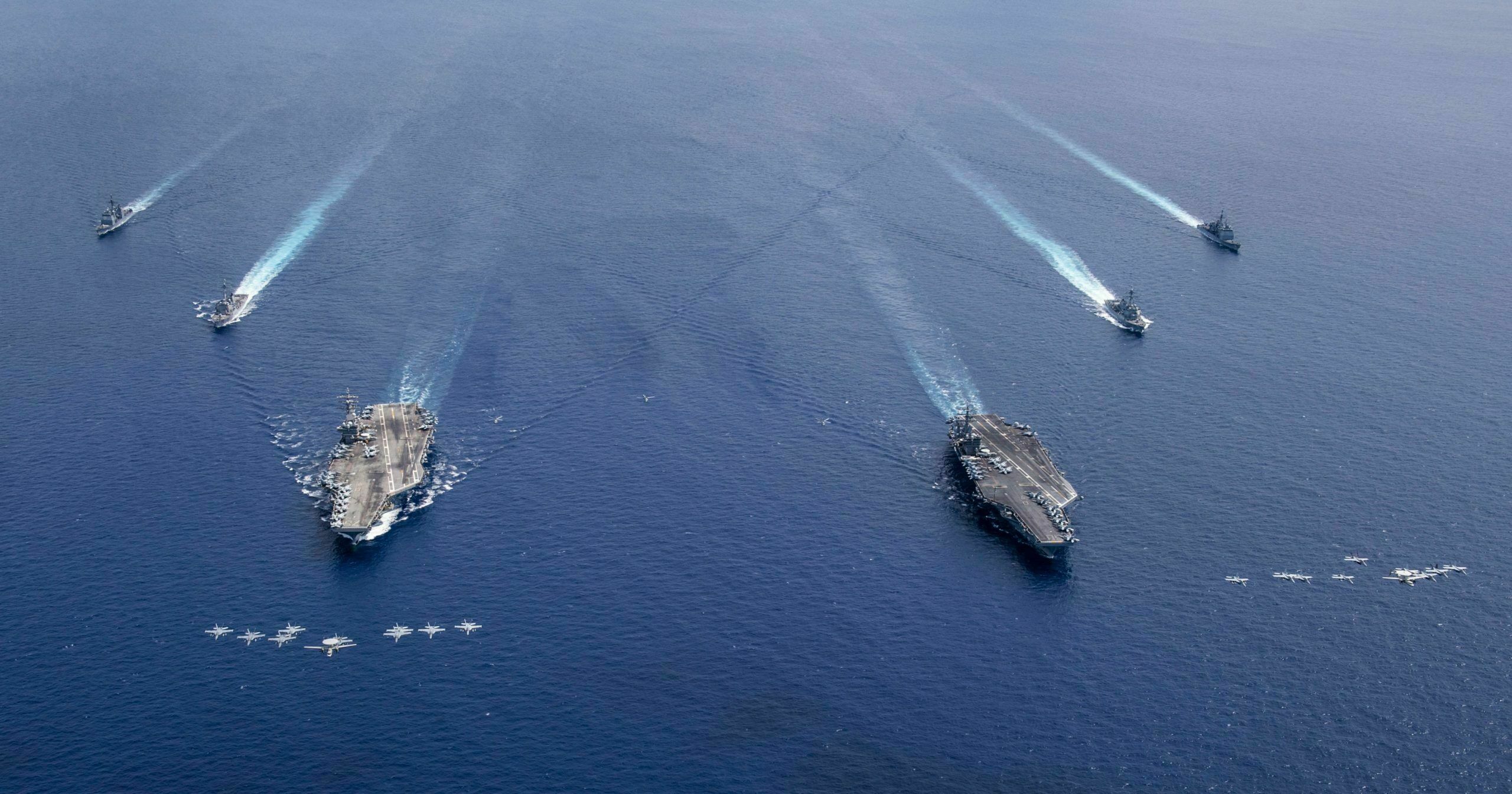 Nimitz, Ronald Reagan Carrier Strike Groups continue dual carrier operations in South China Sea, demonstrate unmatched commitment to #FreeandOpenIndoPacific: https://t.co/yXboNmwhPA #USNavy @US7thFleet @INDOPACOM pic.twitter.com/ROE1PMvN7o