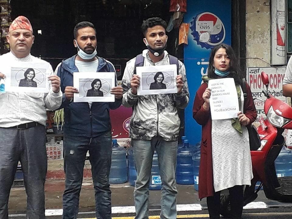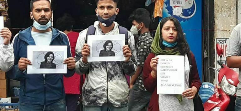 नेविसंघका कार्यकर्ताहरुले राजदूत यान्छीको तस्बिर र प्ले कार्डसहित प्रदर्शन गरेका छन् । नेकपाभित्र चर्को विवाद भइरहेको बेला यान्छीले नेताहरुलाई घरमै गएर भेटेपछि विरोध प्रदर्शन शुरु भएको हो ।