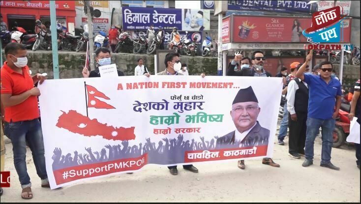 लकडाउन उल्लंघन गर्दै प्रधानमन्त्री ओलीको पक्षमा प्रदर्शन