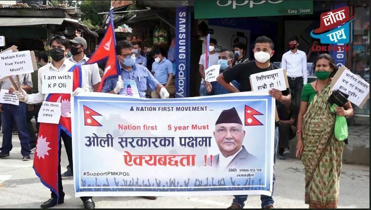 लकडाउन उल्लंघन गर्दै प्रधानमन्त्री ओलीको पक्षमा प्रदर्शन
