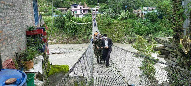 नेपाली सेनाको ब्यारेकमा हेलिकप्टर ल्याण्ड गरी बाटो सफा गरेर स्थलमार्गबाट घटनास्थल पुगेको उनका प्रेस सल्लाहकार श्रीधर न्यौपानेले जानकारी दिए ।