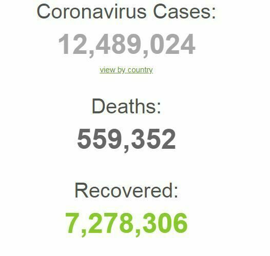 यसैगरी विश्वभर संक्रमितको संख्या १ करोड २४ लाख ८९ हजार २४ पुगेको छ । हालसम्मसबैभन्दा धेरै अमेरिकामा र त्यसपछि ब्राजिलमा संक्रमण देखिएको छ ।
