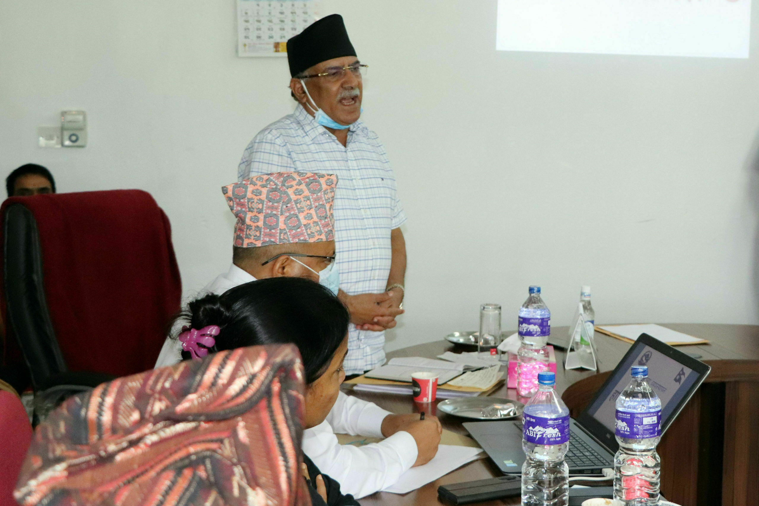 सतर्कता अपनाउन र उच्च मनोबलका साथ एकताबद्ध भएर कोभिड–१९ का विरुद्ध लड्न उनले सुझाव दिए । रोगविरुद्ध सबै राजनीतिक शक्ति, नागरिक समाज, पत्रकार सबै एकताबद्ध हुनुपर्ने पूर्वप्रधानमन्त्री दाहालको भनाइ थियो । उनले जिल्लामा राप्ती, नारायणी र रिउ नदीमा तटबन्धसहितको चक्रपथ निर्माणका लागि विस्तृत अध्ययन प्रतिवेदन बनेर अर्थ मन्त्रालयमा बजेटका लागि पेस भएको जानकारी पनि दिए । अध्यक्ष दाहालले भने, “यो मेरो ड्रिम प्रोजेक्ट हो । यो चितवनका जनताको समृद्धिको आधार बन्छ ।” साथै जिल्लामा रहेका खहरे खोलाहरुको व्यवस्थापनमा ध्यान दिनुपर्नेमा पनि उनले जोड दिए ।