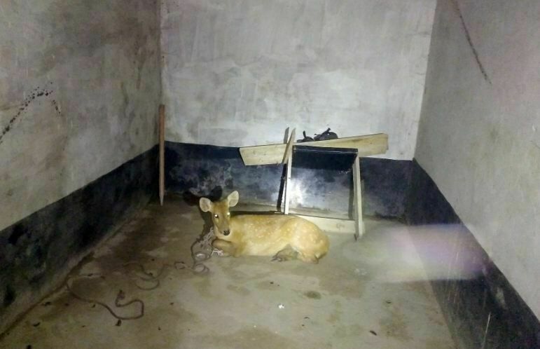 स्थानीयवासी अरुण मुखियाले कोशी नदीबाट निकालेर आफ्नो घरमा ल्याइराखेको हरिणलाई इलाका प्रहरी कार्यालय हनुमाननगर सप्तरीबाट खटिएको टोलीले आफ्नो कार्यालयमा ल्याएको छ ।