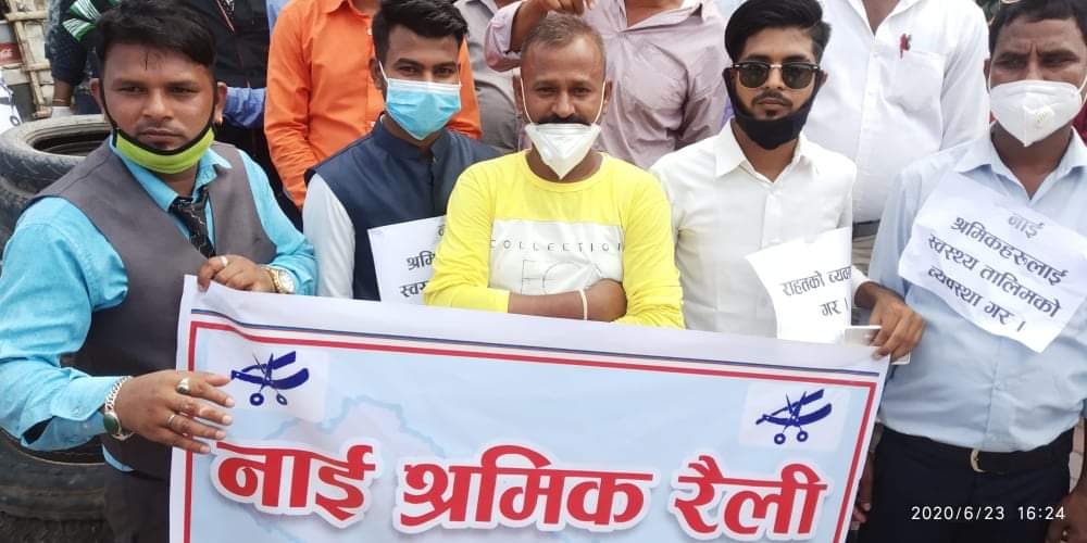 लकडाउनका कारण व्यापार व्यवसाय बन्द गर्नु परेकाले लकडाउन अवधिको प्रतिमहिना २५ हजारका दरले रकम दिनुपर्ने माग व्यवसायीहरुले राखेका हुन् । नेपाल नाई ट्रेड युनियनले मंगलबार माइतीघरमा आफ्नो समस्या सम्बोधन गर्न सरकारको ध्यानाकर्षण गराउँदै प्रदर्शन गरेको छ । तत्काल सम्पूर्ण श्रमिकहरुलाई राहतको व्यवस्था गर्नुपर्ने, लकडाउन अवधिको बैंक ब्याज मिनाहा गर्नुपर्ने र सपल तथा कोठा भाडा पूर्ण रुपमा मिनाहा गर्नुपर्ने माग राख्दै प्रदर्शन गरेका हुन ।