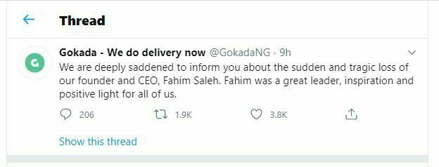 ‘हाम्रा संस्थापक तथा सीईओ फहिम सलेहको असामयिक मृत्युले हामी मर्माहित भएका छौँ,’ कम्पनीले बुधवार ट्विट गरेको छ ।