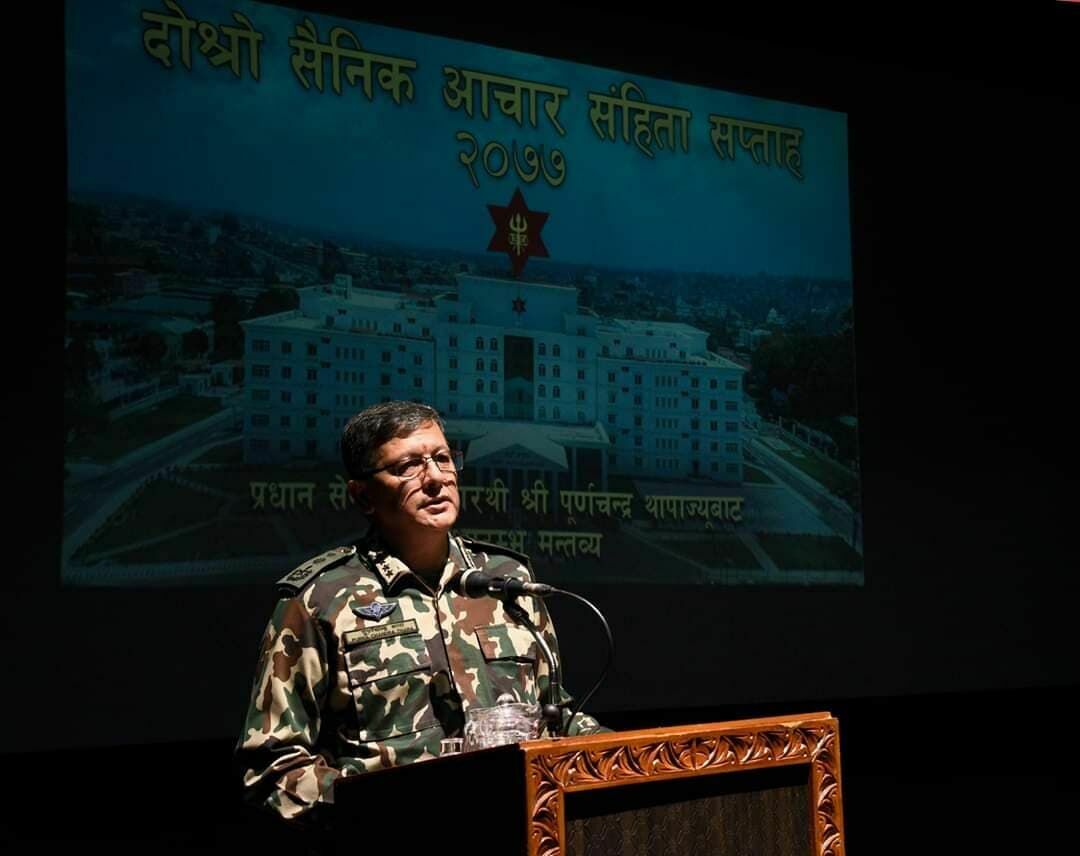 सोही अवसरमा प्रधानसेनापति थापाले पेशेवर र व्यवसायिक सेनाको विशेषता र आधार भनेकै प्रणालीमा आधारित सैनिक संगठन भएकोले नेपाली सेनामा आचारसंहिता सम्बन्धी विषयमा हरेक व्यक्तिले हरेक दिन विशेष जोड दिनुपर्ने बताए ।