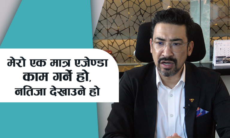 सर्वप्रथम त २ वर्षदेखि होइन ६ वर्ष अघिदेखि नै प्रष्ट थियो । किनभने मैले पहिलो कार्यकालमै एसोसिएटमा इच्छा जायर गरेको थिए । तर, विभिन्न परिस्थिति र टिम स्प्रिडका लागि मैले छोड्नुपर्यो । एक प्रकारले मलाई युवा नेता पनि भन्छन्, हुनतः केश पनि फुलिसकेको छ । टिमको भावना र एकरुपता हुनुपर्छ भन्ने निजी क्षेत्रमा मेरो स्ट्रोङ प्रिन्सिपल छ । म अर्को पटक आउँछु भनेर पहिलेको कार्यकाल छोडेको हो । यहाँ मेरो ६ वर्ष भयो । त्यसैले अहिले आएर मैले दाबी गरेको हुँ । यसमा मेरो एउटा मात्रै मुख्य एजेण्डा के छ भने काम गर्ने हो । रिजल्ट ल्याउने हो । समग्र रुपमा अर्थतन्त्रको विकासमा लाग्ने हो । व्यवसायहरुको समृद्धि हुनुपर्यो, व्यवसायीको समृद्धि हुँदा ठूला व्यवसायको मात्र होइन समग्र रुपमा साना, मझौला उद्योगदेखि लिएर सबै वर्गको हुनुपर्यो । त्यो भयो भने मात्र हाम्रो समग्र रुपमा आर्थिक विकास हुन्छ । नत्र भने सीमित व्यक्तिले मात्र प्रगति गर्न सक्यो भने हाम्रो आर्थिक विकास हुने सम्भावना हुँदैन । जुन समृद्ध नेपाल र सुखी नेपालीको सपना हामीले लिएका छौं, त्यो साकार पार्न ग्राह्रो हुन्छ । त्यसैले हामी भन्छौं, साझा समृद्धि र समावेशी विकासमा लाग्नुपर्छ भन्ने मुख्य एजेण्डा हुनुपर्छ ।