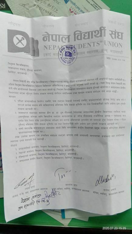 उक्त कार्यले जेहेन्दार विद्यार्थीहरुलाई मर्का पर्ने भन्दै जनप्रशासन केन्द्रिय बिभागमा वरिष्ठताको आधारमा प्राध्यापकहरुमध्यबाट बिभागिय प्रमुख तुरुन्त नियुक्त गर्न माग समेत गरेको छ ।