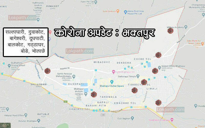 स्वास्थ्य मन्त्रालयले दिएको जानकारी अनुसार भक्तपुरमा बितेको २४ घण्टामा थप २ जनामा कोरोना भाईरस पोजेटिभ देखिएको हो ।