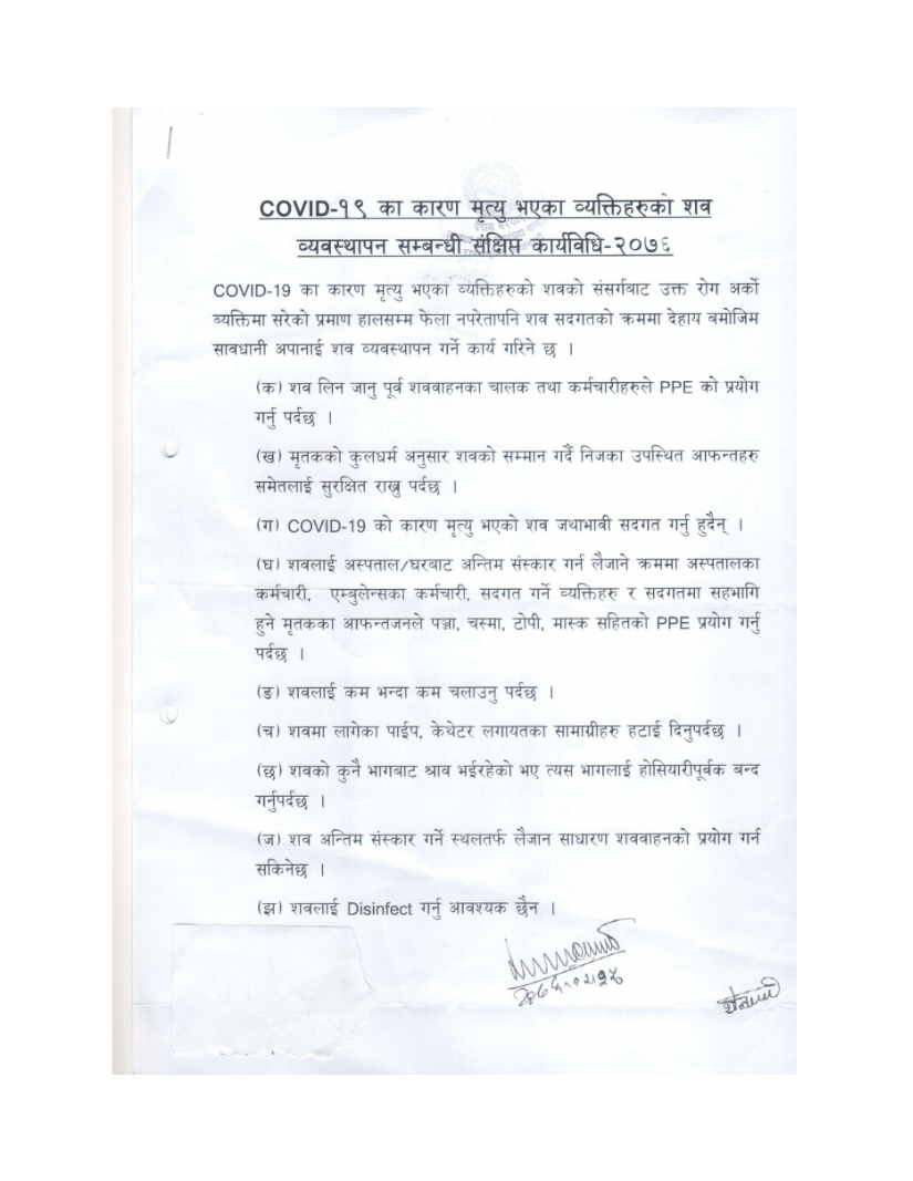 कोरोना लागेर मृत्यु भएकाको शव कसरी व्यवस्थापन गरिन्छ ?