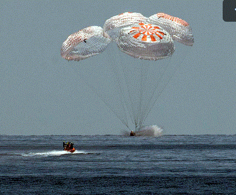 स्पेसएक्समा यात्रारत दुई अन्तरिक्ष यात्री फ्लोरिडा नजिकको समुद्री क्षेत्रमा प्यारासुट मार्फत अवतरण गरेका थिए ।