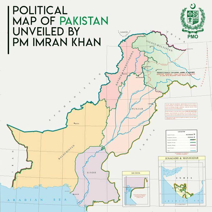 भारतले कास्मिरको अर्ध स्वायत्तता खारेज गर्ने कदम चालेको एक वर्ष पुुग्न एक दिन बाँकी रहदाँ पाकिस्तानी प्रधानमन्त्रीले नयाँ नक्सा सार्वजनिक गरेका हुन् । विदेशमन्त्री साह मेहमुद कुरैसीसँगै राष्ट्रका नाममा सम्बोधन गरेका प्रधानमन्त्री इमरानले मंगलबार नै नयाँ नक्साले केन्द्रीय क्याबिनेटबाट स्विकृति पाएको र यसलाई स्कुल र कलेजमा पठन–पाठनमा समेत प्रयोग गर्न सकिने बताए ।