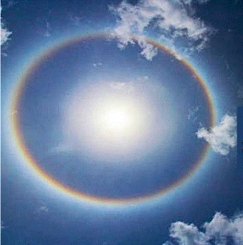 २२ डिग्री एंगलमा एटमोस्फेरिक आइस क्रिस्टल र लाइटको रिफ्लेक्सनको कारण यस्तो रिंग जस्तो बन्छ ।
