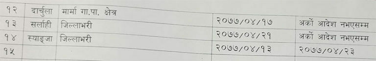 कतिपय जिल्लामा भने अर्को सूचना नआएसम्मको लागि निषेधाज्ञा जारी गरिएको छ । भने कतिपय जिल्लामा भने समयावधि तोकिएको छ ।