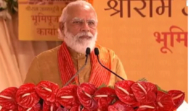 उक्त शिलन्याश समारोहलाई सम्बोधन गर्दै प्रधानमन्त्री मोदीले शताब्दीदेखिको पर्खाई आज आएर समाप्त भएको बताएका छन् ।