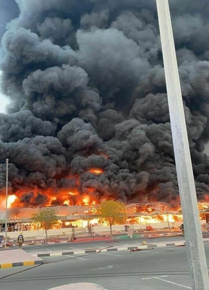 #Fire erupts in #Ajman, #UAE. Residents report plumes of thick, black smoke billowing out of a souq. @gulf_news pic.twitter.com/UvDmSofhXR