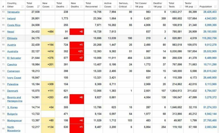 नेपाल कोरोना संक्रमितको हिसावले विश्वको ६६ औँ स्थानमा रहेको छ ।