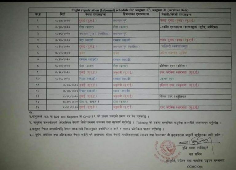 सीसीएमसीले आगामी भदौ १५ गतेसम्मको लागि विभिन्न देशहरुबाट गरिने उद्धार उडान सार्वजनिक गरेको थियो । तर उद्धार उडान स्थगन भएसँगै सीसीएमसीले तय गरेको पूर्वनिर्धारित उडानहरु रोकिएका छन् ।