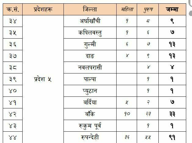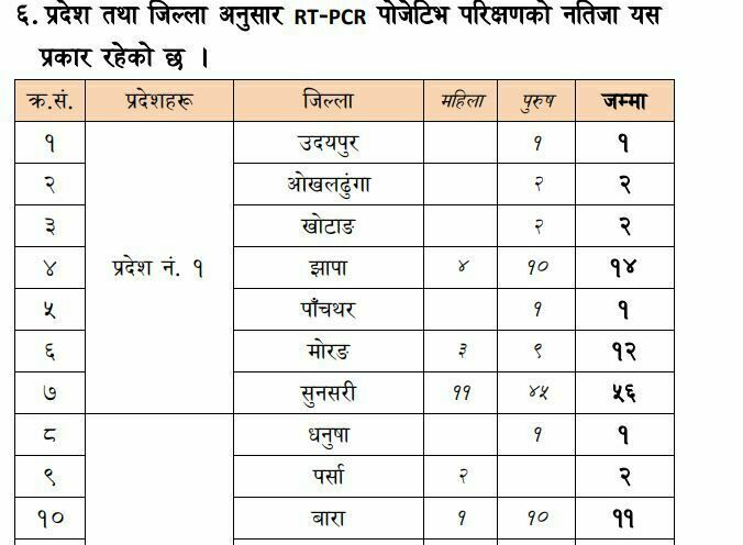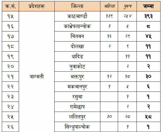 प्रदेश नम्बर १ मा ५ सय ४४, प्रदेश नम्बर २ मा ४ हजार ९१, बागमती प्रदेशमा २ हजार १ सय ६ र गण्डकी प्रदेशमा ३८ जना रहेका छन् । यस्तै प्रदेश नम्बर ५ मा ३ सय २३, कर्णाली प्रदेशमा ४५ र सुदूरपश्चिम प्रदेशमा १ सय ३३ जना गरी देशभरी होम आइसोलेसनमा ७ हजार २ सय ८० जना रहेका छन् ।