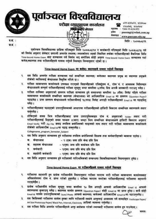 यसका लागि परीक्षार्थीले पालना गर्नुपर्ने नियमका सन्दर्भमा समेत आज विश्वविद्यालयले जानकारी दिएको छ ।