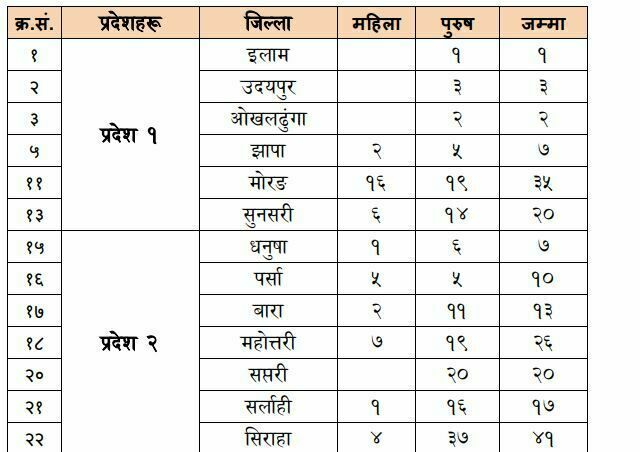 यस्तै होम आइसोलेसनमा प्रदेश नम्बर १ मा ७ सय ४०, प्रदेश नम्बर २ मा ३ हजार ८ सय ३१, बाग्मती प्रदेशमा २ हजार २ सय ४५ र गण्डकी प्रदेशमा ४३ जना रहेका छन् । यसैगरी प्रदेश नम्बर ५ मा ९ सय ५२, कर्णाली प्रदेशमा ३६ र सुदूरपश्चिम प्रदेशमा १ सय ५७ गरी देशभरी होम आइसोलेसनमा ८ हजार ४ जना संक्रमित रहेका छन् ।