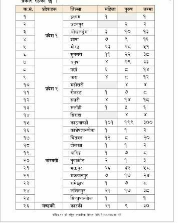 कहाँ कति थपिए विवरणको लागि स्वास्थ्य मन्त्रालयको यो ग्राफ हेर्नुहोस् :
