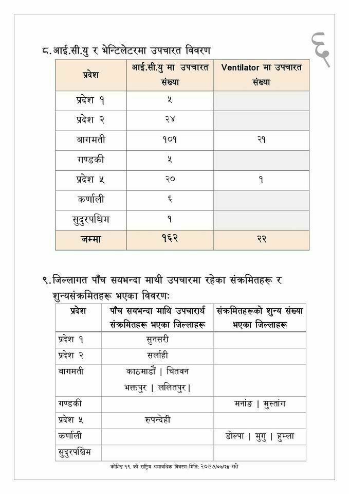 मन्त्रालयका अनुसार आइसियुमा देशभरी १ सय ६२ जना संक्रमित उपचाररत रहेका छन् ।